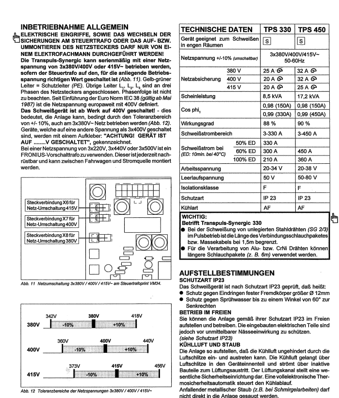 - Schweißstrombereich: 3 - 450 A