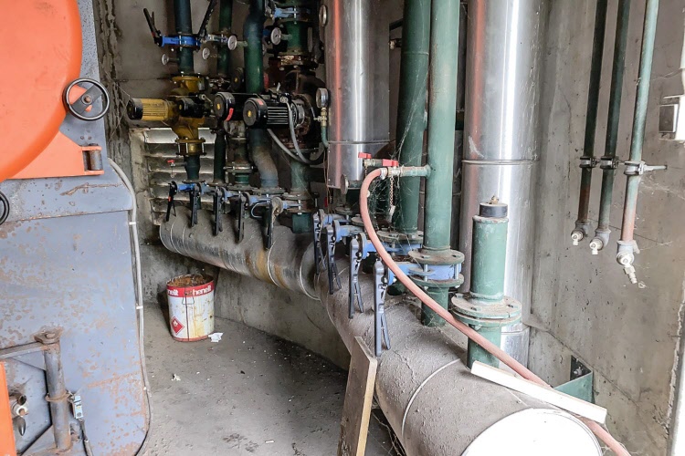 Nennleistung: 600 KW, Baujahr: 1994, Inhalt: 1700 Liter, Aufstellmaß: ca. 400/350 cm, inkl. kompletten Rauminhalt, Raumaustragung, Absauggebläse, Pumpen, Verteiler, Schaltschrank nicht vollständig!