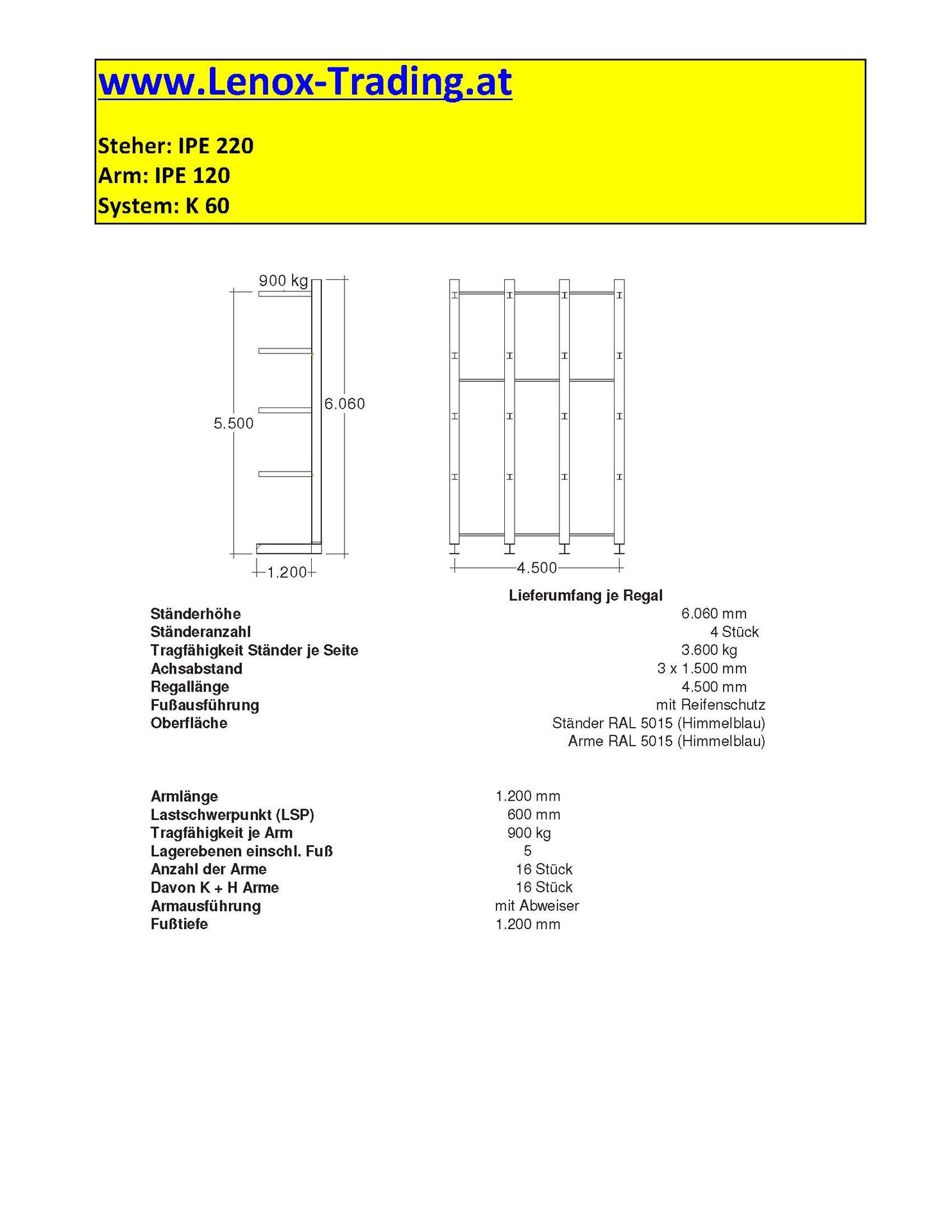 - Regallänge: 4.500 mm