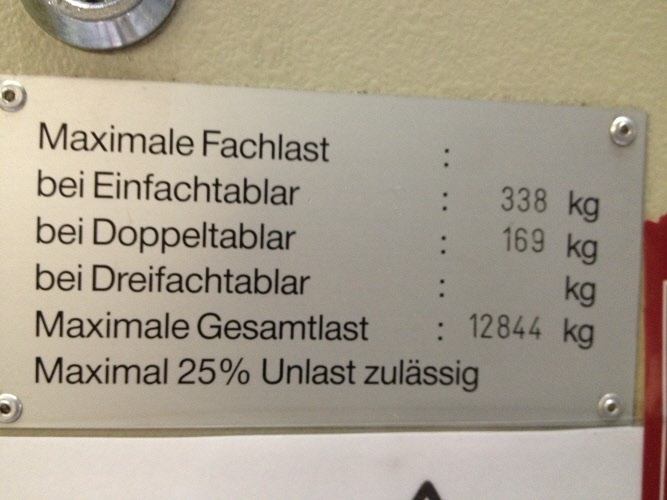 Fachlast Einfachtablar 338 kg