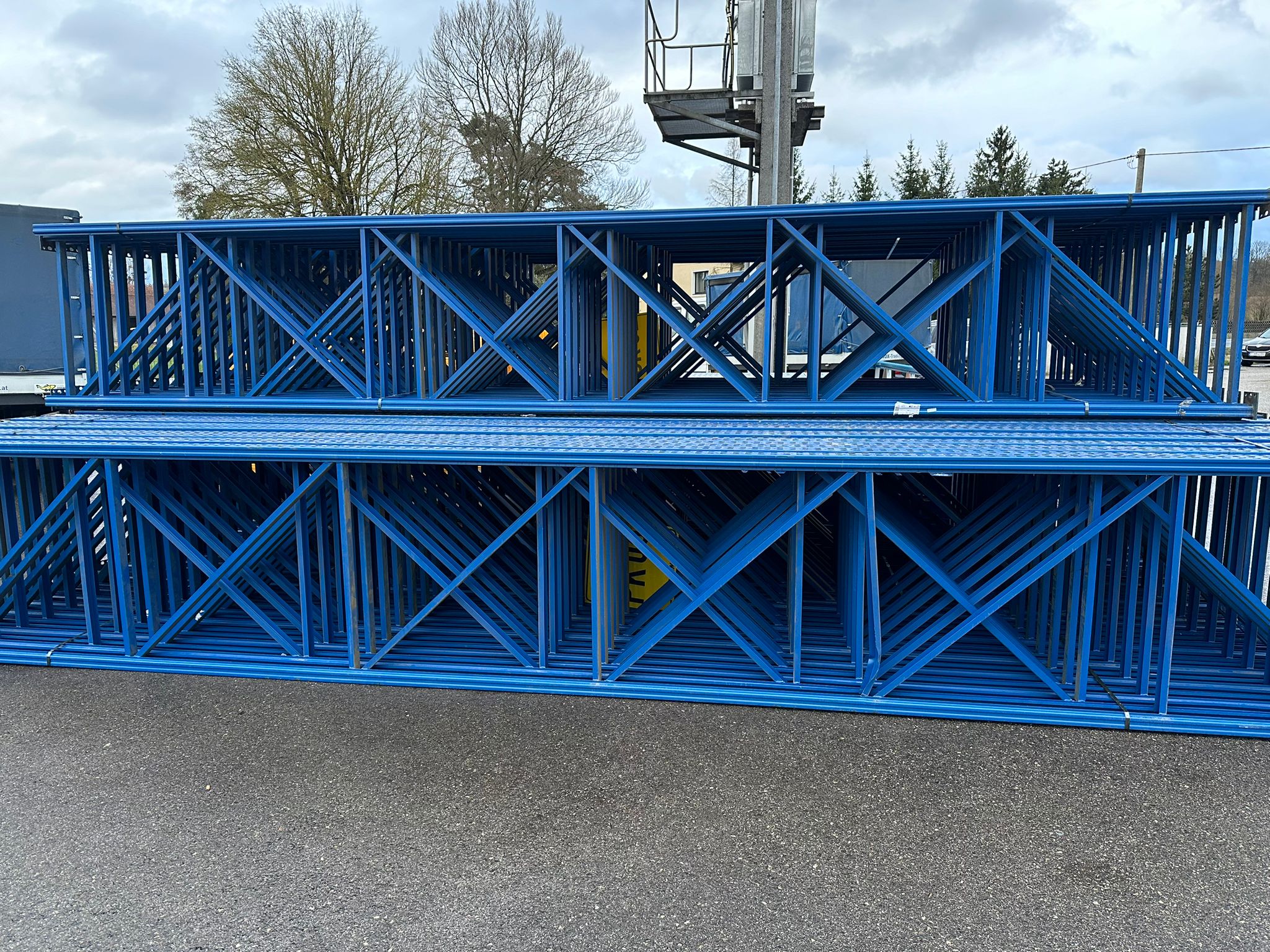 + 78 pz. telai preassemblati, profondità 105 cm, altezza 6,5 m +398 pz. travi, lunghezza 2,7 m, 3000 kg di carico/scomparto +796 pz. ganci di sicurezza +312 pz. ancoraggi per calcestruzzo
